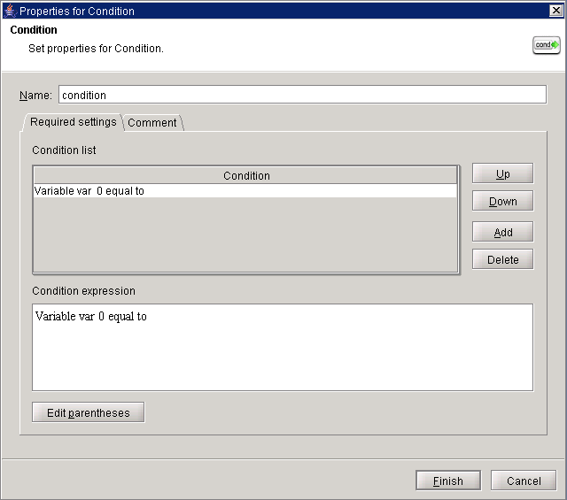 - Depending on the variable type specified in the left-hand side of the condition, the condition detail and the variable type in the right-hand side will change.