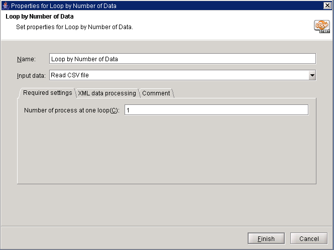 | Change log settings | Optional | Not available | Select whether or not to temporarily change log settings of the loop processing.