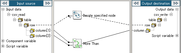 If the value of "column[1]" of input data is more than the value of "column [2]", return "true". If not, return "false".