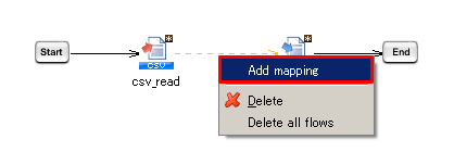 You can select [Add mapping] in the right-click menu on data flows to place a Mapper.