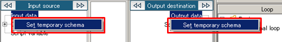 Select [Set temporary schema] from the right-click menu on “Input data” of input source or “Output data” of output destination.
