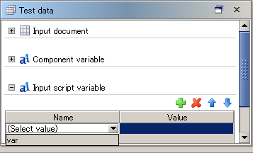 Add the line with the "+" icon, select an arbitrary script variable from the list of [Name], and input a set value to [Value].