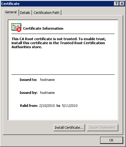 | Common name(CN) | Specify the host name with the machine in which IntegrateServer is installed. | It should agree to the domain name of URL specified by a browser according to CA with it. |