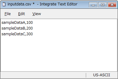 | sampleDataA,100 sampleDataB,200 sampleDataC,300 |