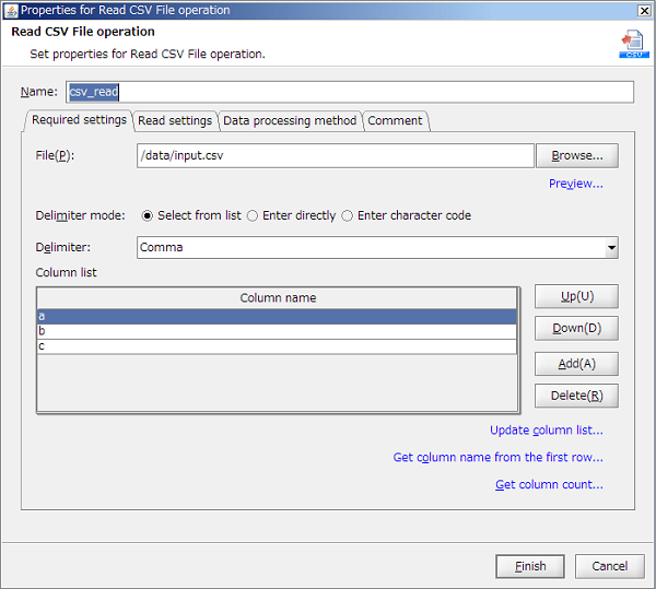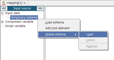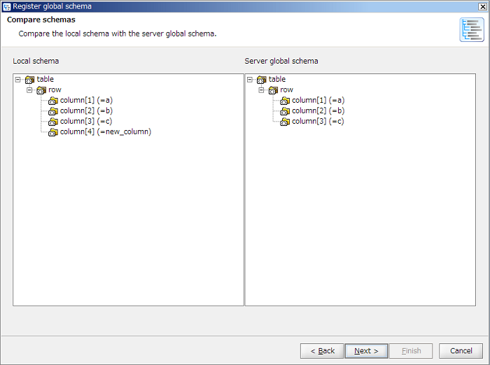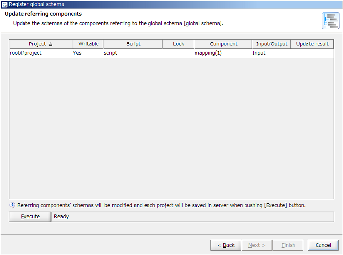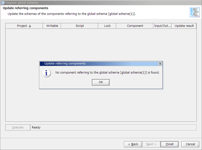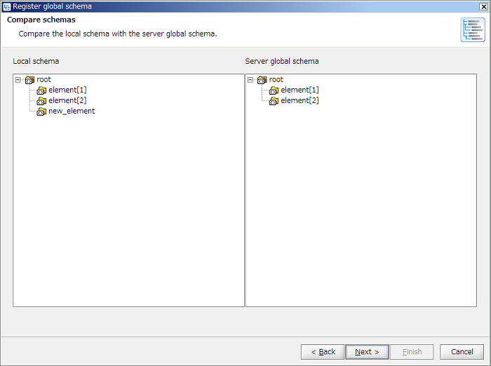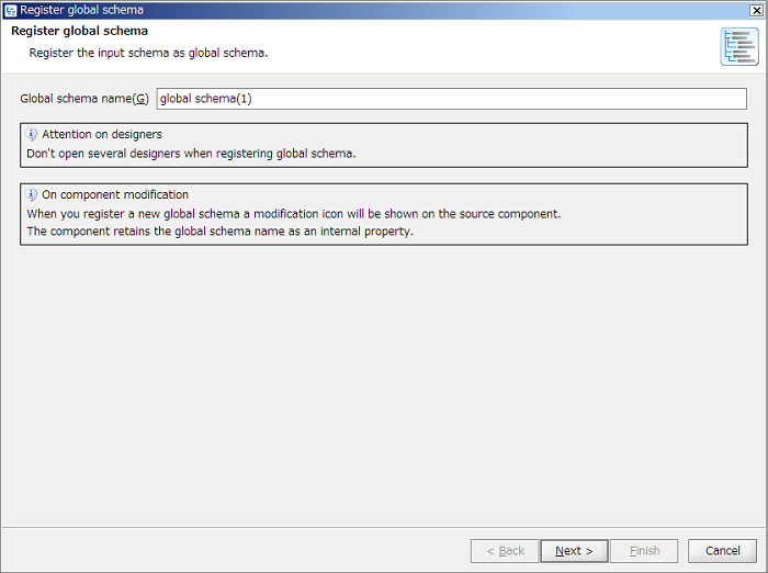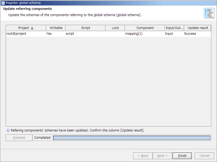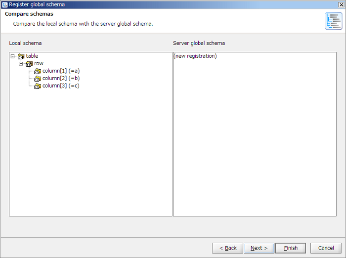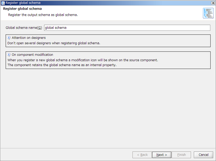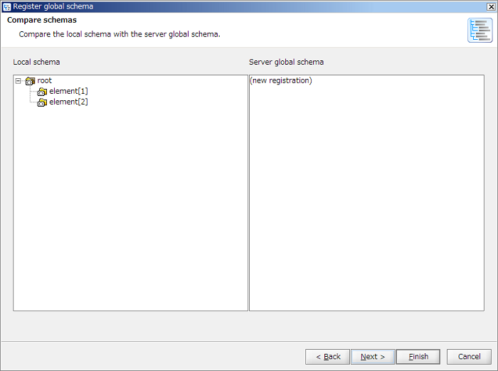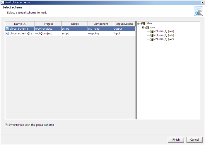 If unchecked [Synchronize with the global schema] in "Select schema" screen and [Finish] button is clicked, only a schema is loaded and the global schema will not be referred to.