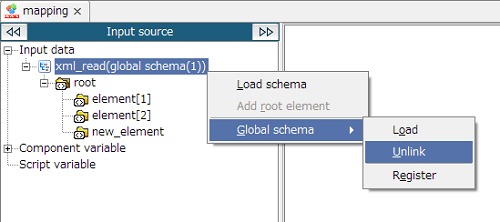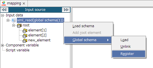 If a Global Schema is registered from mapper editor, then the schema starts to refer to Global Schema simultaneously.