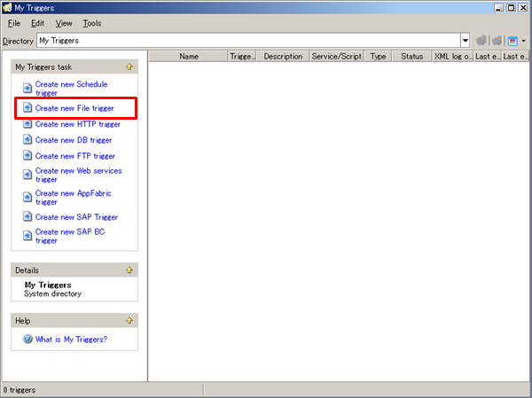 | FTP Trigger | FTP trigger is trigger function to execute script detecting file up-loaded to FTP server that works on IntegrateServer. | |