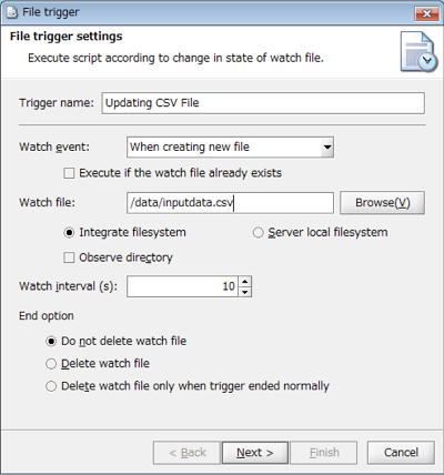 | File Trigger | File trigger is a trigger function to execute scripts when a event of monitored file being created/updated/deleted occurs. | |