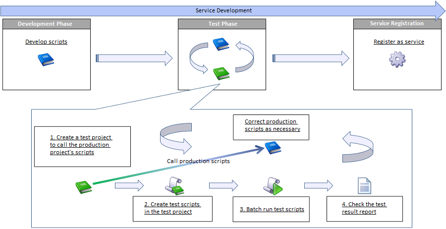 Refer to “Service Development” for the development phase and refer to “Service Operation” for registering services.