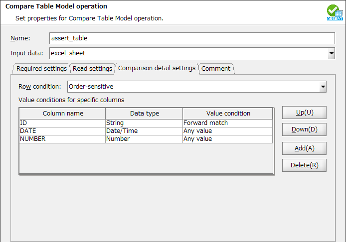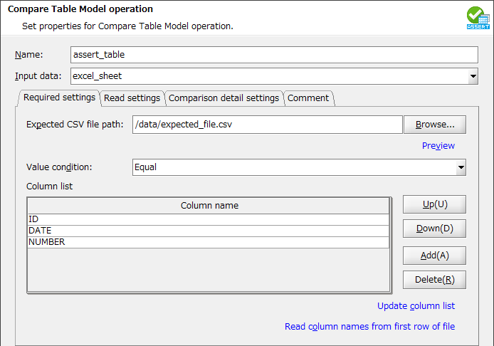As you can specify the result data of table model type component in the input data of Compare Table Model operation, writing to a temporary file is not needed for assertion.