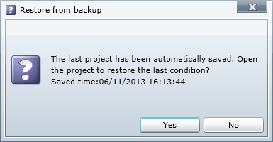 | Recent Projects | Projects to be opened can be selected from the list of the most recently used projects. | ||